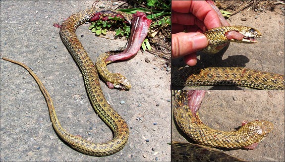Por su tamaño y coloración me aventuraría a decir que es una hembra subadulta o incluso adulta. No es raro que las hembras de esta especie sean tomadas a menudo por ejemplares juveniles, debido a que normalmente mantienen el diseño propio de su inmadurez durante el resto de su vida y a que alcanzan menores tamaños que los machos. Esta creencia se ve además reforzada debido a que la gran mayoría de los ejemplares que se observan atropellados son machos en celo que deambulan en busca de hembras por su extenso territorio. Leer más. |