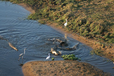 | En estos días, aunque el tiempo nos está dando un respiro y seguro que están pasando cosas interesantes en el campo y aquí, al lado de casa, otras ocupaciones me han tenido alejado de las observaciones y del blog. Por eso, me he decidido a rescatar algunas viejas historias que tengo en la recámara para estas ocasiones. Hoy volaré con la imaginación y los recuerdos al Parque Kruger, en Sudáfrica donde pude observar un curioso comportamiento de los cocodrilos del Nilo (Crocodylus niloticus) en agosto del 2007. Leer más. |