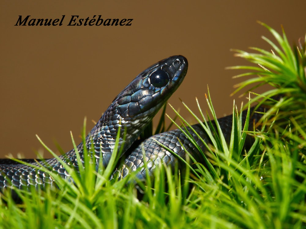 Unas fotucas de culebra de collar (Natrix natrix) melánica, si ya es difícil encontrar una culebra melánica, me encuentro otra, esto sí que es suerte. Ir al enlace. |